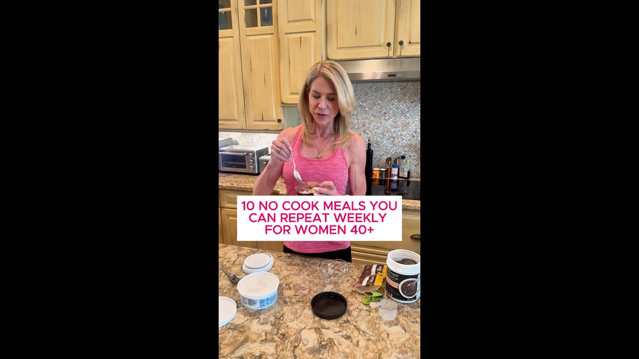 The secret? Buy quality proteins that are already prepared (rotisserie chicken, canned wild salmon, pre-cooked grass-fed beef slices). BREAKFASTS (5 options, rotate them) 1. Loaded Smoothie — Flax milk (10 oz), protein powder (20+ g), collagen, fiber blend, ground flaxseed, no-sugar cherries, ice. That's 40+ grams of